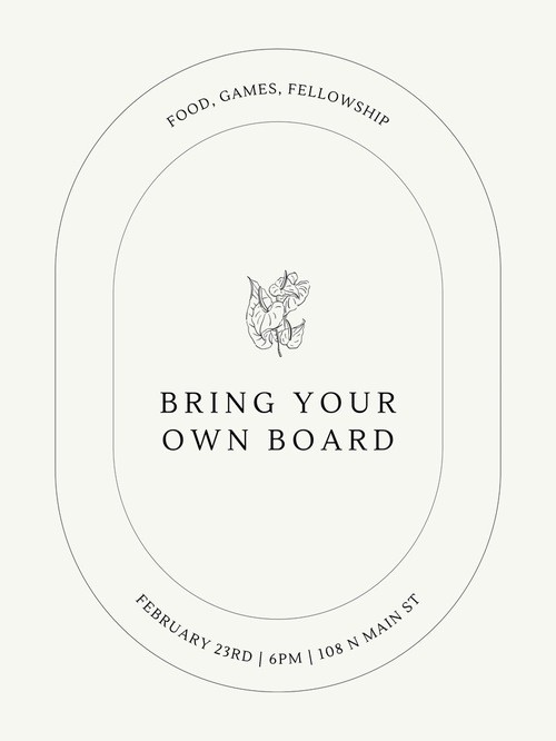 Bring whatever you want on your board. Examples being; charcuterie, desserts, chicken nuggets, etc. Water, Tea, and Coffee will be provided.